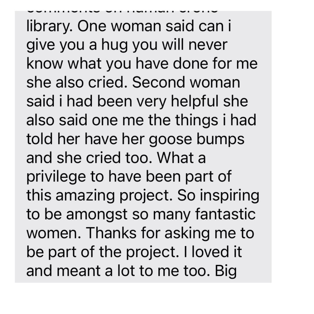 We will be seeking funding from other places to run a version of the Crone Human/Spoken Library again - I’d love to take it tour to schools! If you are interested in being a ‘book’, or know someone who would make a great book, drop us line.
