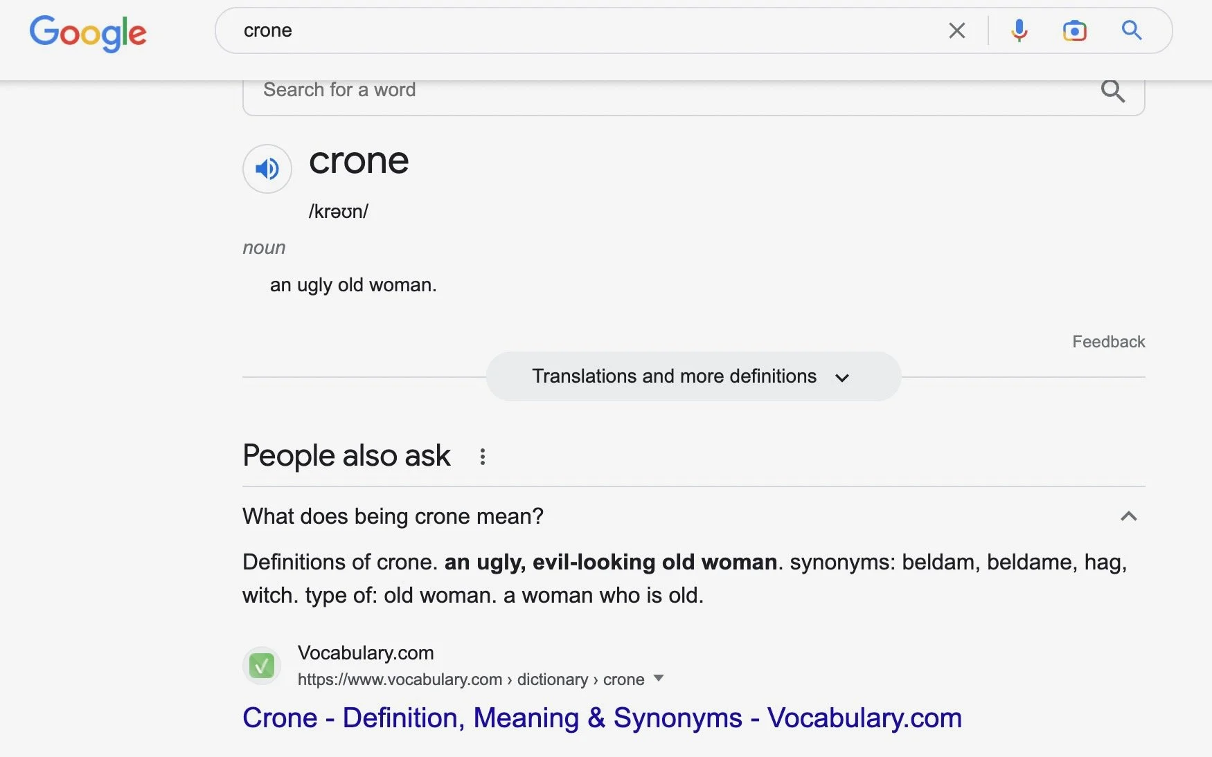 What is the dictionary definition of crone?
